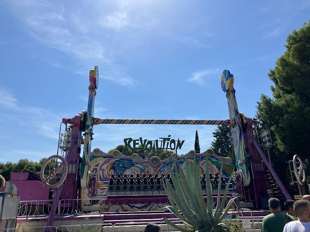 Al Top Spin, aka llamado Revolution, lo tuvimos cerrado y no nos atrevimos a subirnos a El Quetzal porque cuando nos pusimos en la cola llegó un punto en el que dijimos: Este ciclo no acaba nunca y no queremos acabar mareados. Así que nosotros estábamos más a gusto en las sillas de Vertical Twister, que tienen una altura prudente sin ser excesiva para disfrutarla, o entrando a otro clásico como El Missisipi, que tu dices "Yo ahora me tuerzo aquí un pie y me quedo con una". pero no pasó nada, lo gracioso es como cambia la perspectiva.